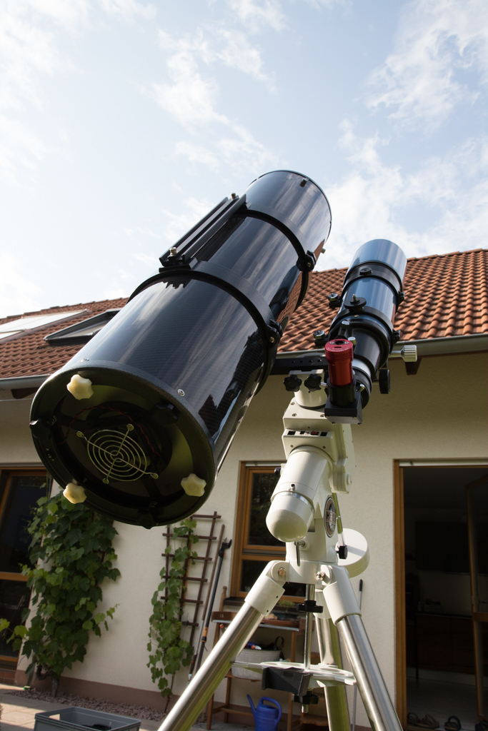 Bei großer Lichtstärke (f/5) erreiche ich damit einen deutlich größeren Abbildungsmaßstabe gegenüber meinem kleinen Refraktor mit 480mm Brennweite.