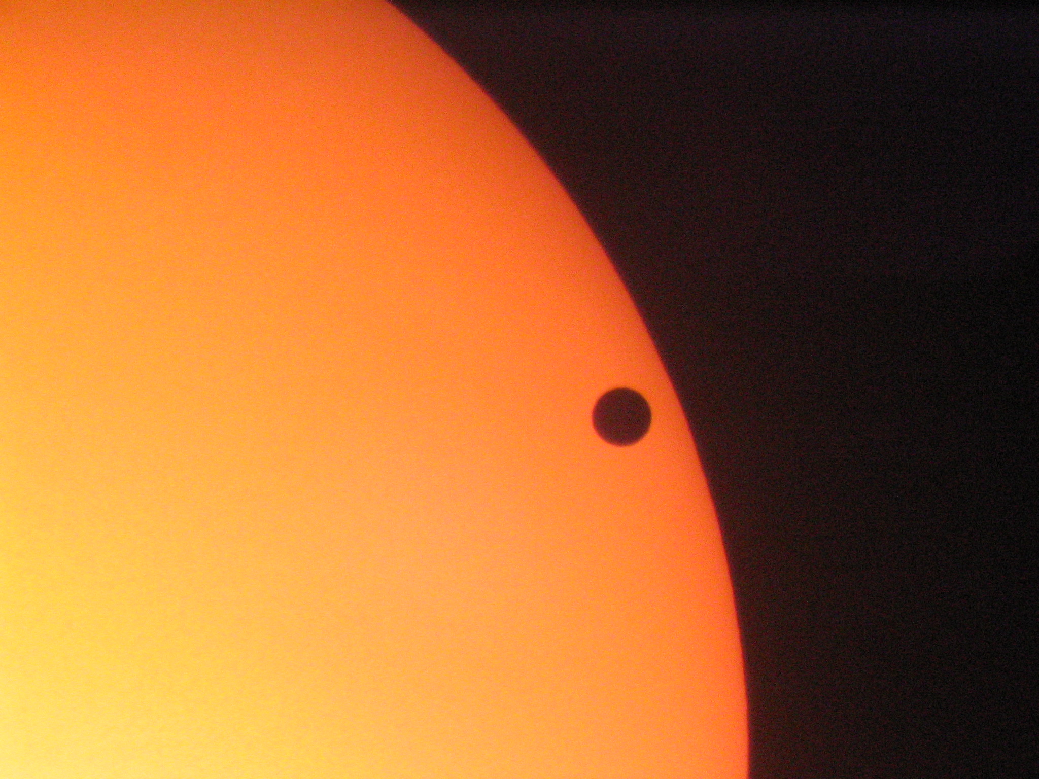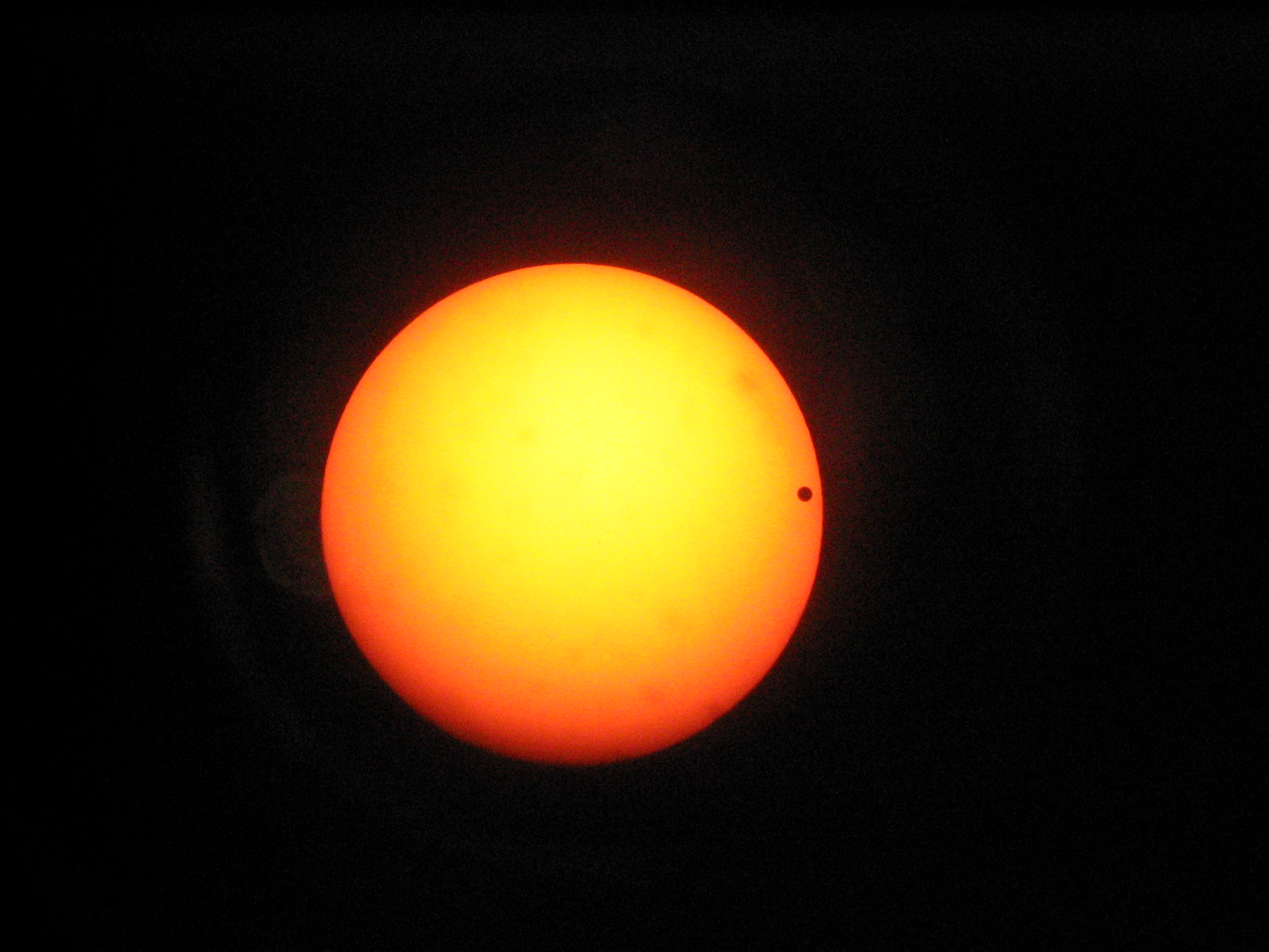 Nach dem letzten Durchgang der Vernus vor der Sonne am 6. Dezember 1882, war es nach etwa 122 Jahren wieder soweit: unser innerer Nachbarplanet Venus zog am 8. Juni 2004 von 7:13 bis 13:26 MESZ als dunkles Scheibchen vor der Sonne vorbei.